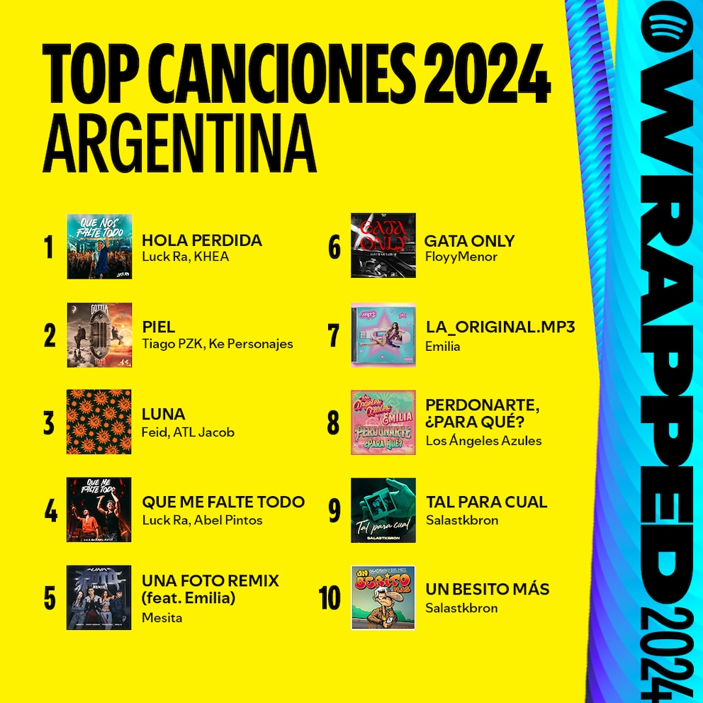 Top 10 Canciones más escuchadas en Argentina durante 2024