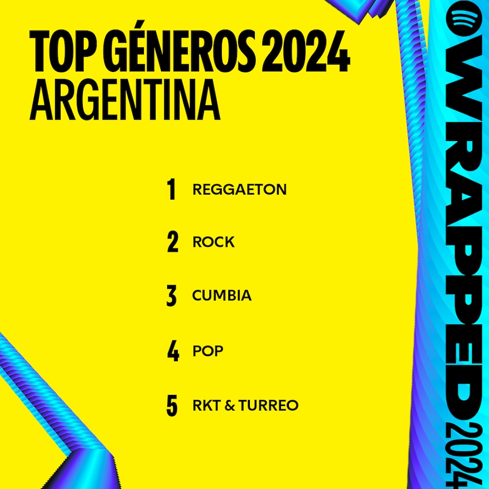 En 2024, los cinco géneros más escuchados en Argentina fueron reguetón, rock, cumbia, pop y RKT & turreo, destacando una diversidad sonora que fusiona tradición y modernidad.
