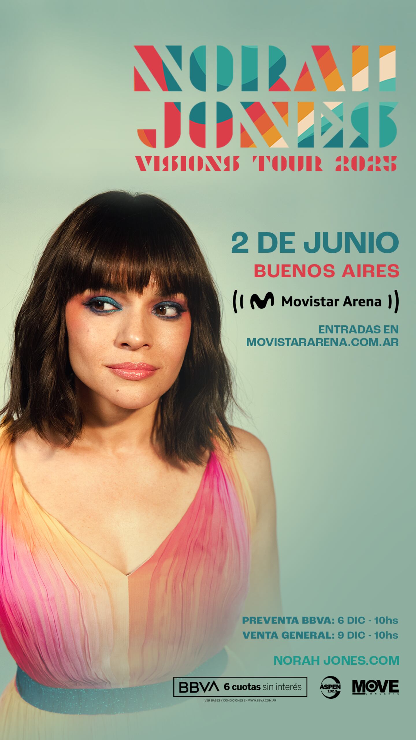 La cantante, compositora, pianista y ganadora de nueve Premios Grammy, Norah Jones, regresa a Buenos Aires luego de 6 años de su última visita al país. La función será el día 2 de junio a las 20:00hs en el Movistar Arena (Humboldt 450).