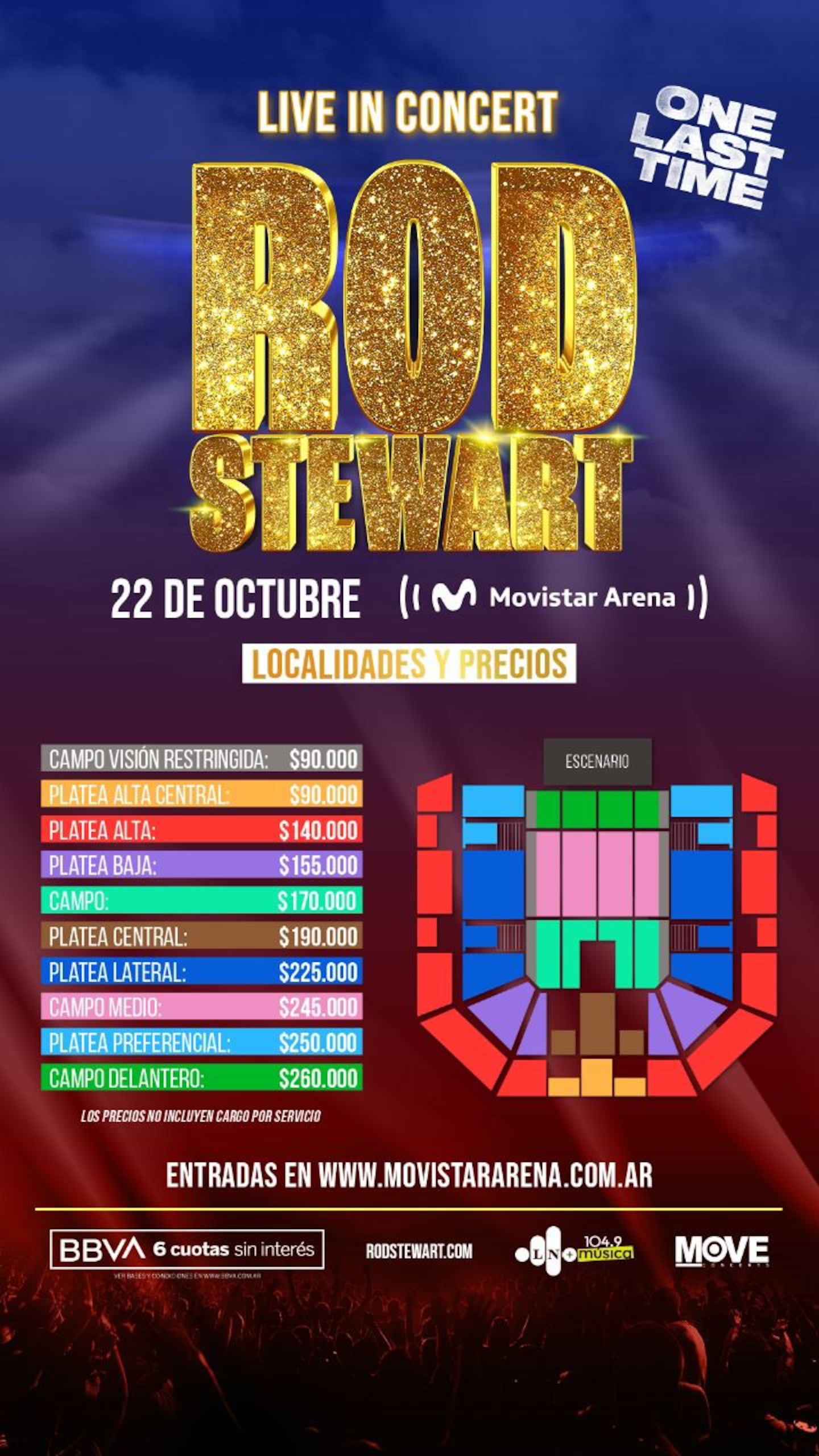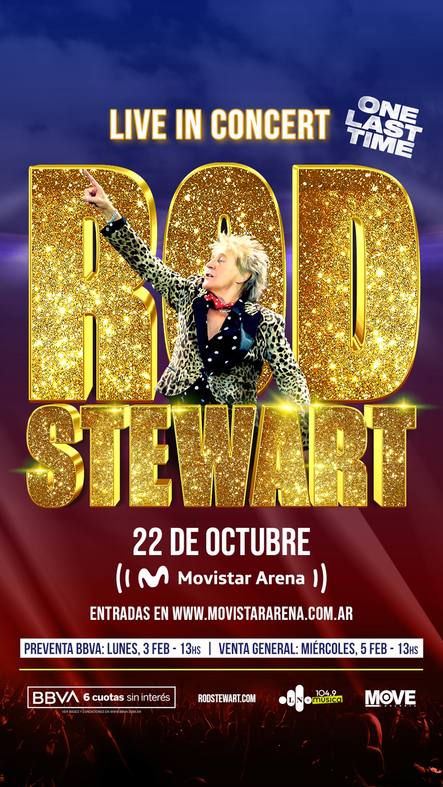 Rod Stewart se presentará el próximo 22 de octubre en el Movistar Arena con preventa exclusiva para clientes de BBVA a partir del lunes 3 de febrero y la venta general el miércoles 5 de febrero únicamente a través de la web del Arena.